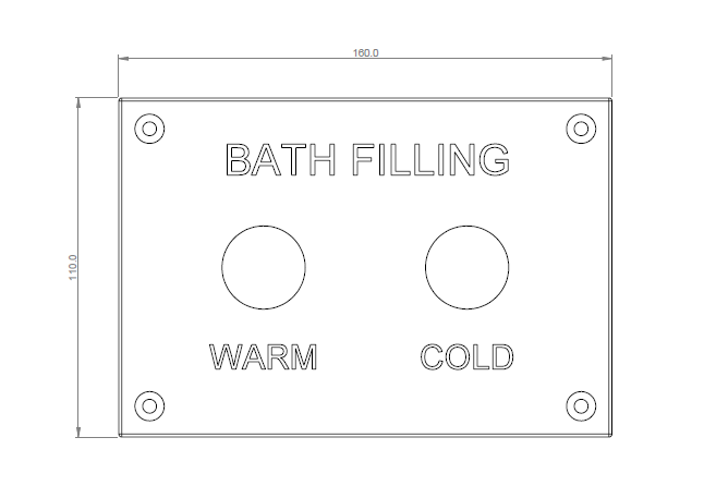 Bath filling plate with warm / cold etching. Compatible with AC02-052 tactile switch, 2x required (not included). Operation settings adjusted via control box (not included).