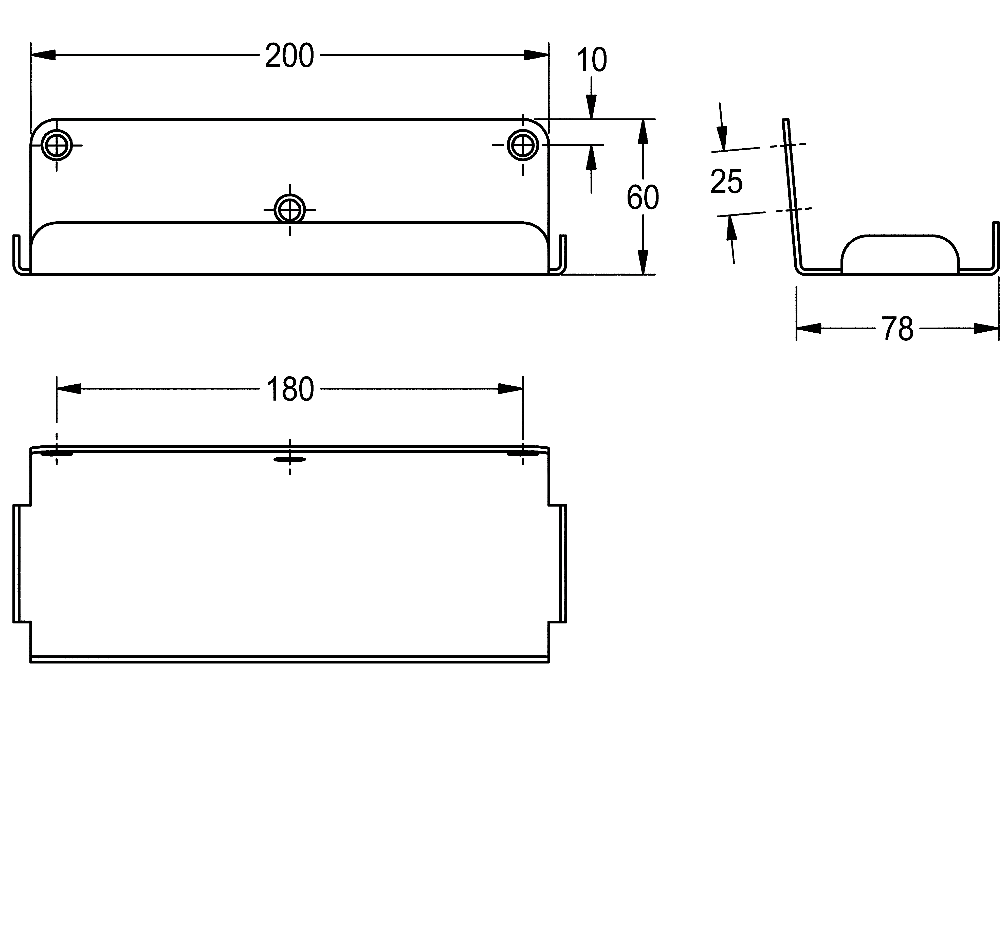 Shelf for wall mounting, stainless steel, surface satin finished, material thickness 2 mm, rounded edges, protection edge at front, includes stainless steel crosshead screws and dowels.