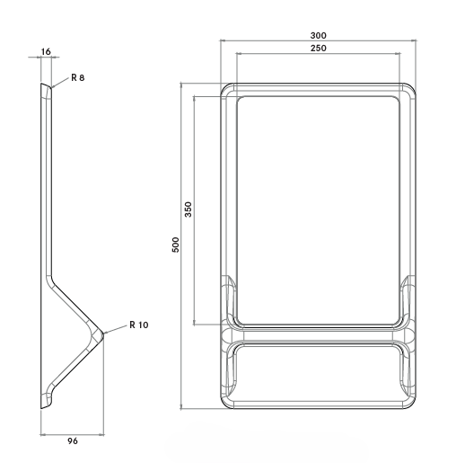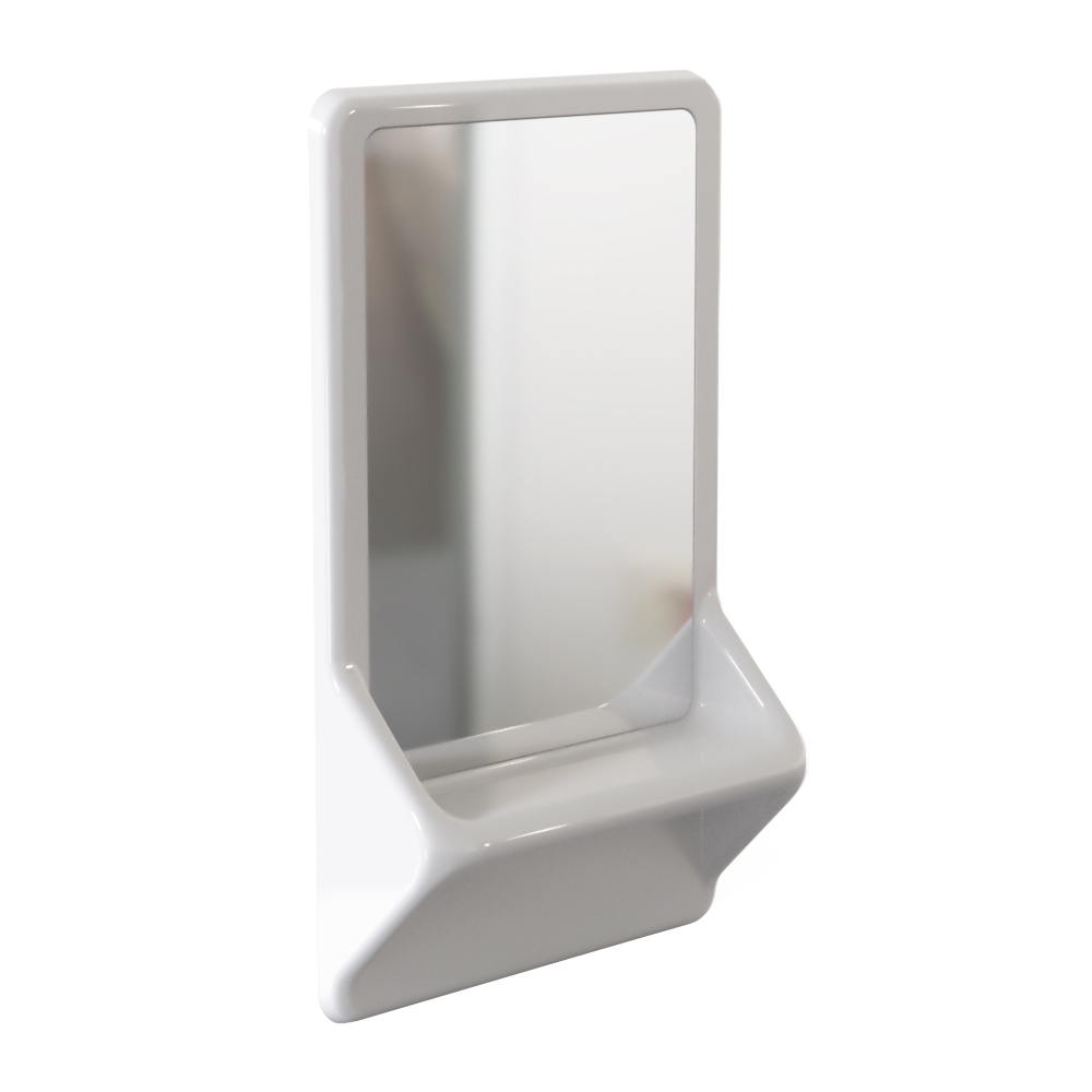 Safe Ensuite Mirror with Moulded Frame and Shelf, Impact resistant frame & mirror glass, suitable for custodial, healthcare and mental healthcare applications.