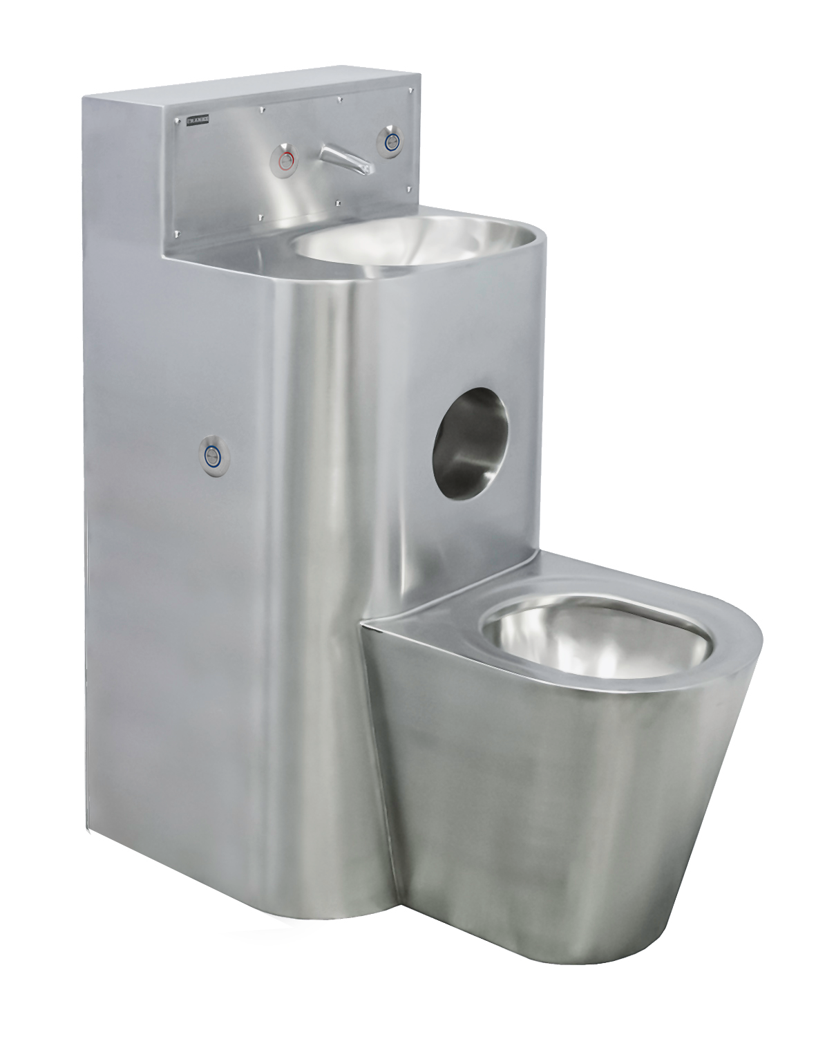 WC Combination Unit for “against wall” installations. Complete with Integrated automatic spout and Tactile operation switches with removable access panel.
